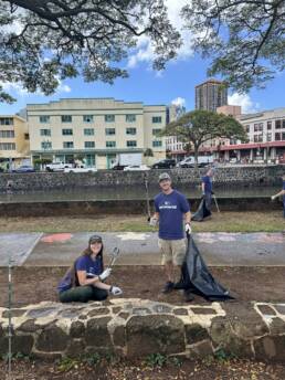 During the event, Oceanit’s volunteers had the opportunity to learn about the park’s history and work alongside other local company volunteers to improve and enhance the park, creating a safe and welcoming space for surrounding residents. Volunteer tasks included removing trash, scrubbing graffiti, planting native trees, and touching up colorful murals.
